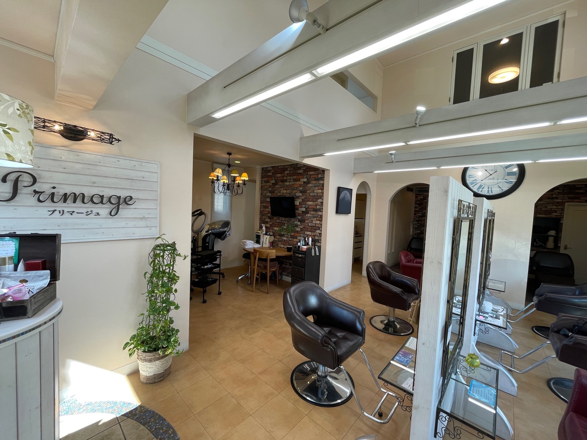 白を基調とした外観と、解放的なカットスペース、リラクゼーション効果抜群の